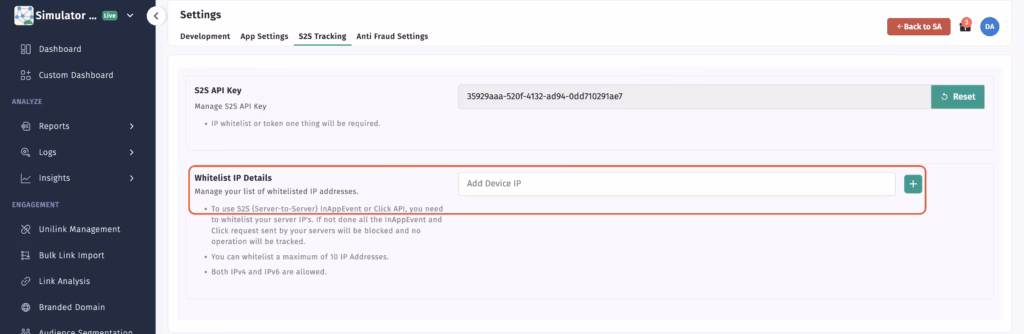 - You can whitelist the IP’s from here.